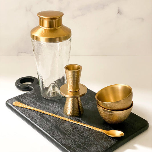 PEBBLED GLASS AND HAMMERED METAL COCKTAIL SHAKER